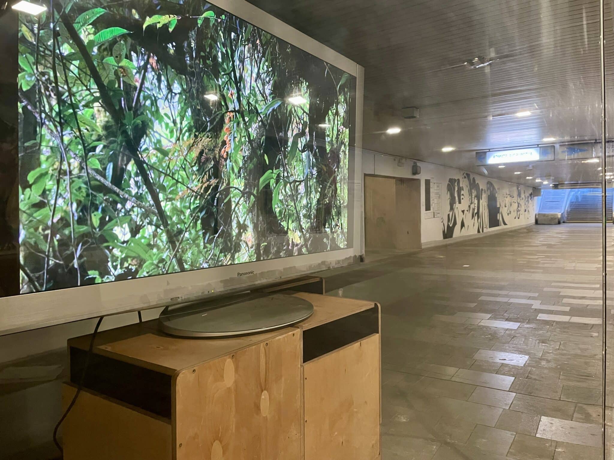 Umelkyňa Jana Bednárová mení prehliadaný podchod Nástupišťa 1-12 na digitálny priezor do vzdialeného sveta subtropickej džungle v severovýchodnej Indii, ktorý v reálnom čase prenáša obraz a život tamojšieho ekosystému do našej urbánnej reality.
